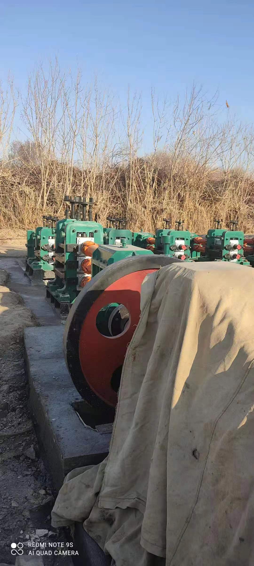 序號 名稱 數量 1 φ250三輥軋機;中心距250mm;輥面長度600mm 1 2 主電機;P=145KW;直流電機 1 3 飛輪組;飛輪φ1500mm 1 4 三輥軋機減速機 ZD50 1 5 三軸齒輪機座;A=250MM 1 6 萬向節(jié)SWC250 3 7 聯(lián)軸器 1 8 φ220軋機電機;P=55KW 7 9 φ220二輥軋機;中心距220mm;輥面長度450mm 7 10 連軋機聯(lián)合減速機ZD30 7 11 萬向節(jié) 14 12 成品輸送輥道 長度14M 1 13 冷床 長度20米 1 客戶現(xiàn)場安裝照片